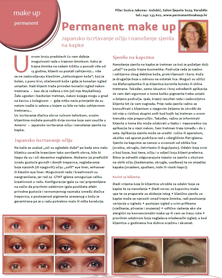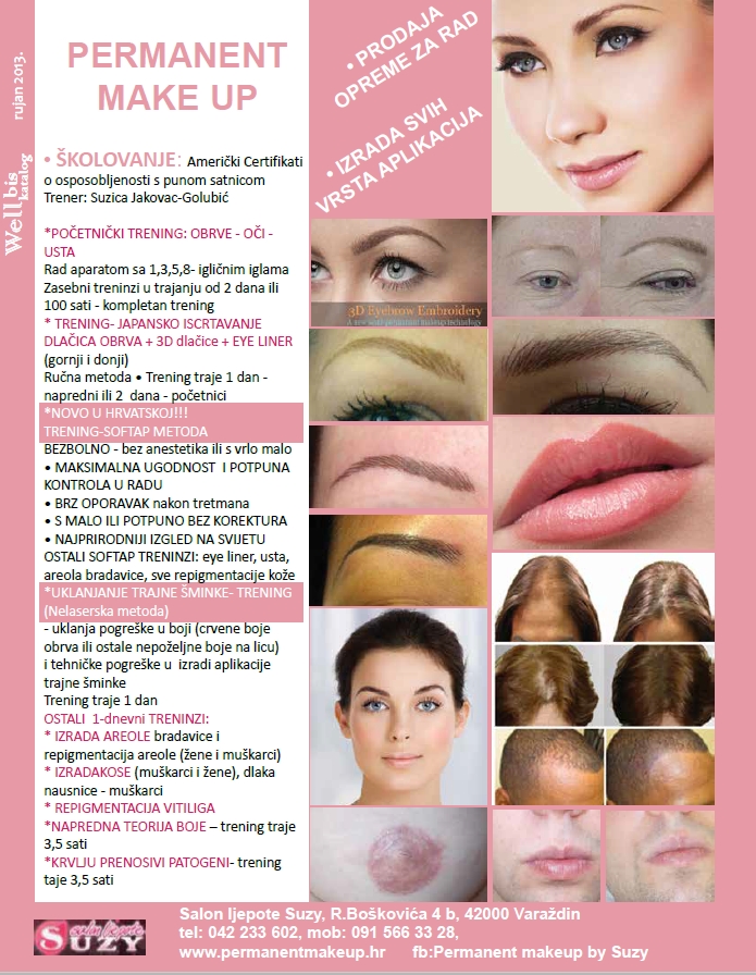 Salon ljepote SUZYRuđera Boškovića 4 b, 42000 VaraždinMobilni: 091 566 3328 E-mail: salonljepotesuzyvz@gmail.com Web stranica: www.permanentmakeup.hr