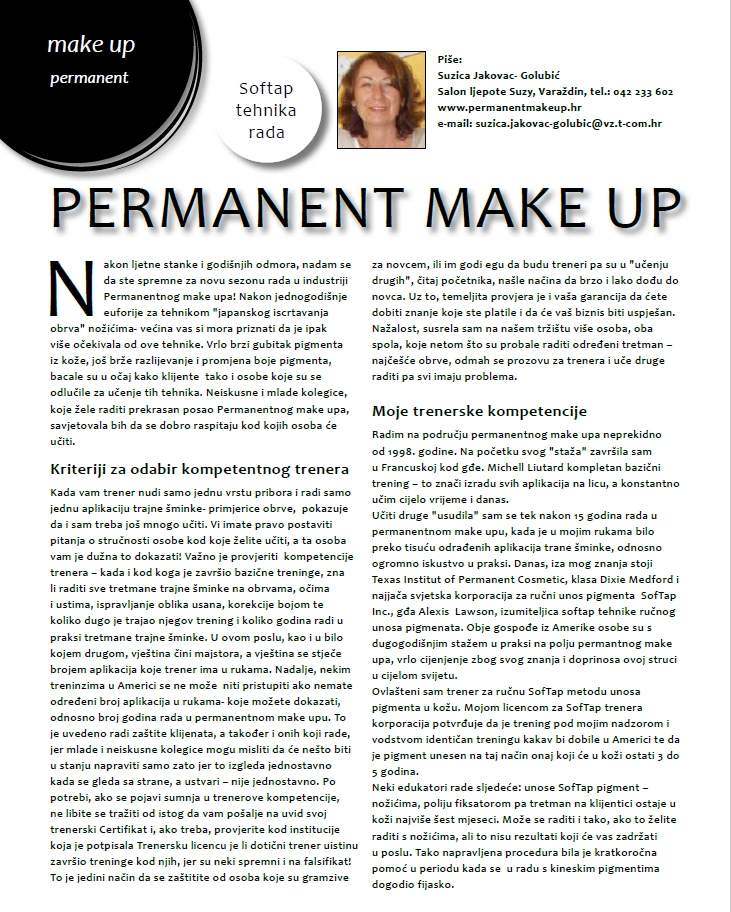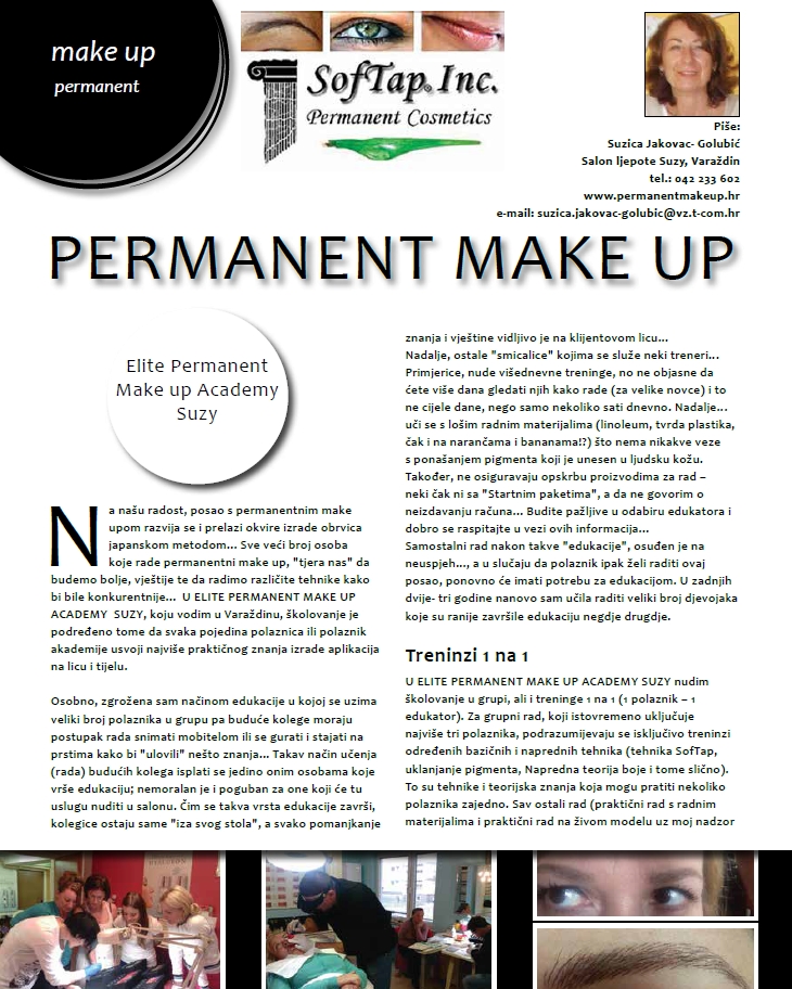 Salon ljepote SUZYRuđera Boškovića 4 b, 42000 VaraždinMobilni: 091 566 3328 E-mail: salonljepotesuzyvz@gmail.com Web stranica: www.permanentmakeup.hr